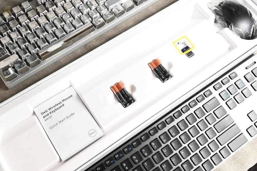 这套键鼠的包装看起来很有商务范,用过戴尔PC的朋友应该很熟悉这种极简的设计风格,这款采用107键布局的键盘,在键位上与常规键盘稍有差别。包装里除了键盘和鼠标之外,还提供了4节7号电池,外加一份快速上手指南,以及2.4G的接收器,方便草莓下载APP下载开箱即用。