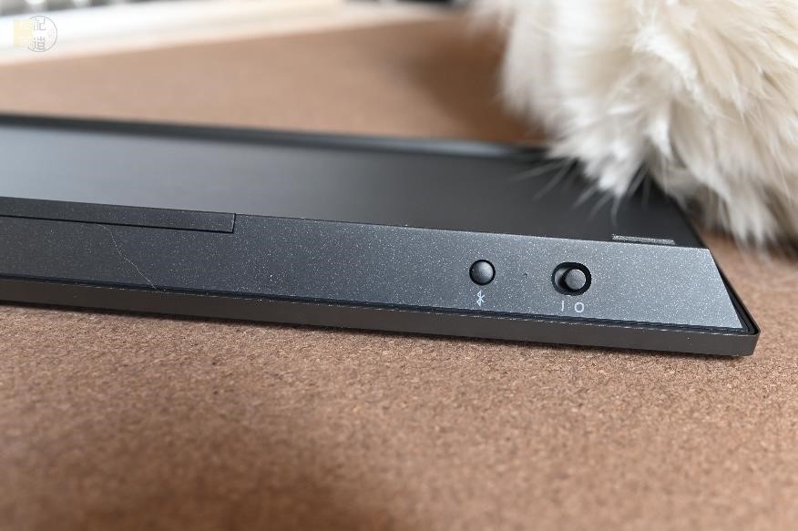 键盘的顶部右侧有一个拨动式的开关键,以及一个蓝牙配对键,日常使用中完全可以盲操。